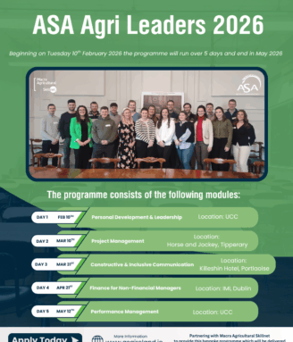 Register Now Event Date: 10th February, 10th March, 31st March, 21st April and 12th May Event Location: Various Cost: €780 Per Person The ASA is delighted to partner with Macra Agricultural Skillnet and the Food Industry Training Unit in University College Cork to offer a five-day bespoke programme for Future Agri leaders. This programme aims…